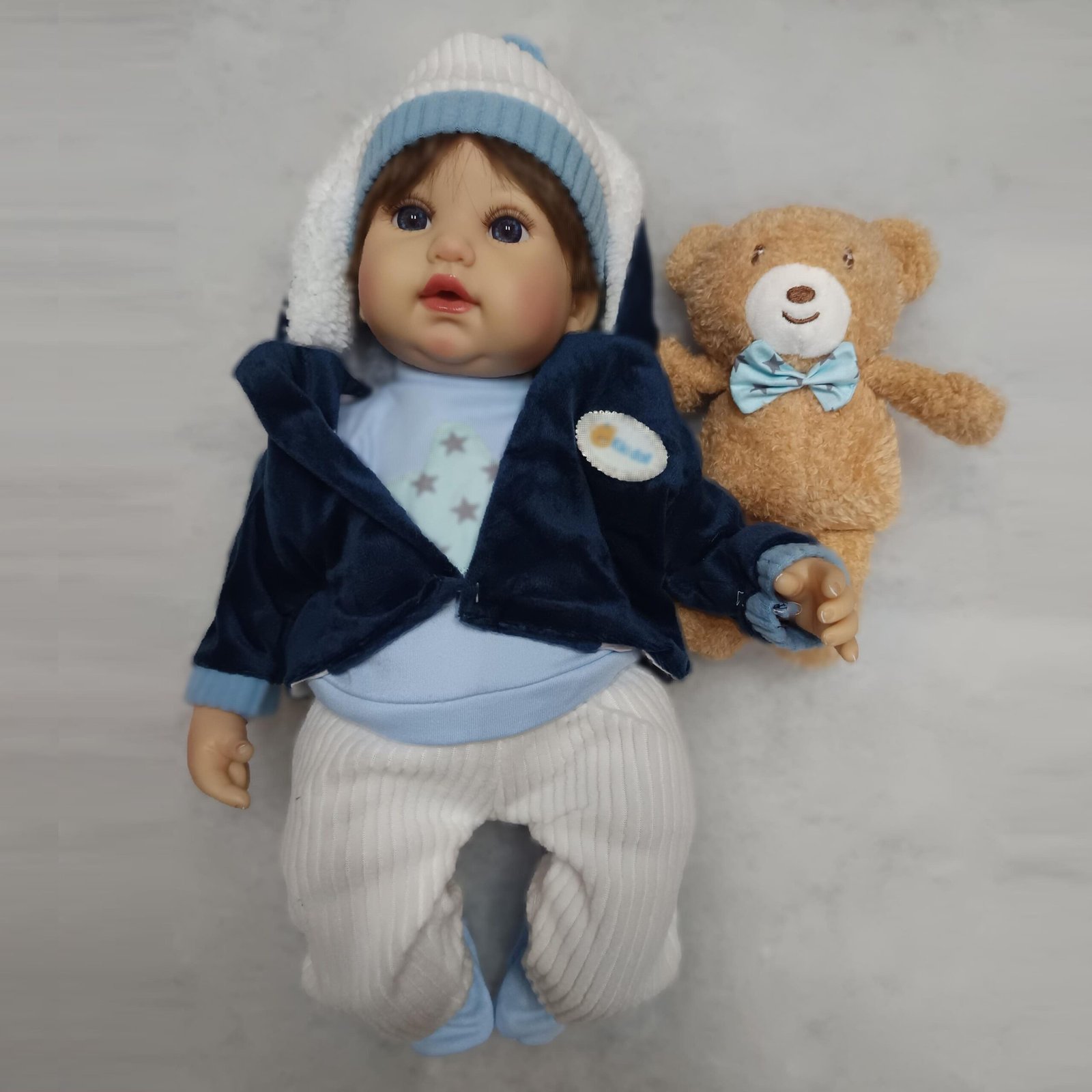 Diseñado en vinilo o silicona suave, con ropa de tela y accesorios con un nivel de realismo excepcional, lo que lo convierte en un artículo de alta gama en el mercado de juguetes. – En caja